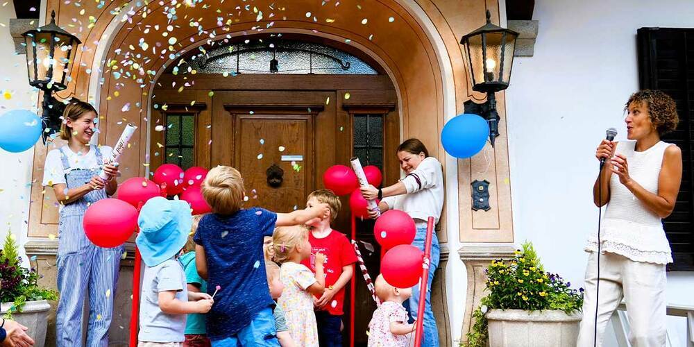 Das gemütliche Fest begann mit einer berührenden Eröffnungszeremonie, bei der die Kinder mit einem funkelnden Goldregen überrascht wurden. Mit Freude erkundeten die Gäste das wunderschön gestaltete Haus und mit dem grosszügigen Umschwung.