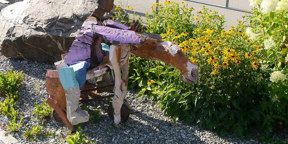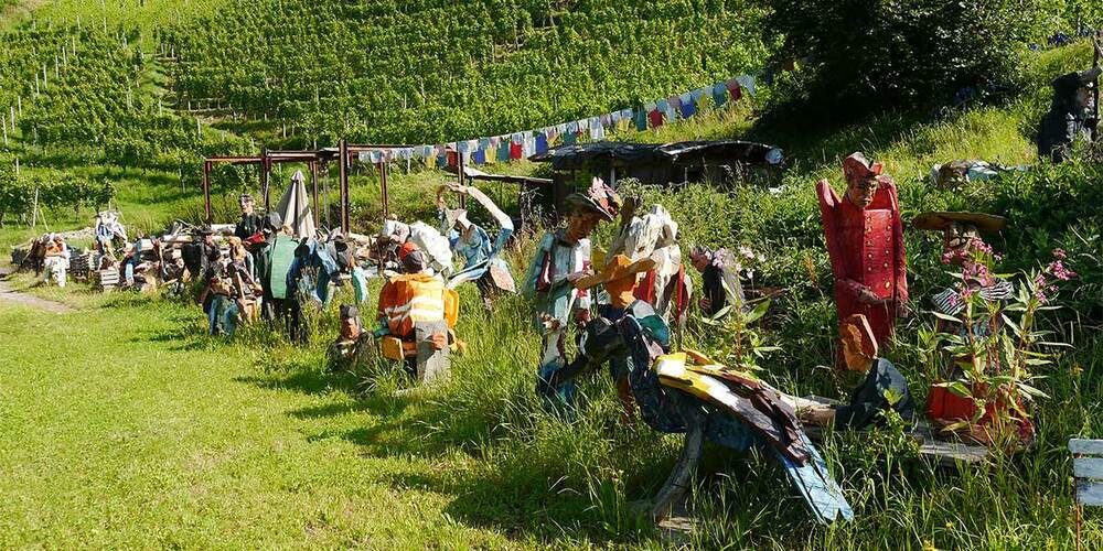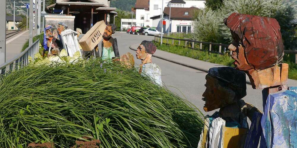 Der ehemalige Arzt, Peter Leisinger, fällt mit seinen Holzskulpturen nicht nur am Bahnhof Malans auf, seine Figuren sind auch im Dorf selbst, auf dem Jungfraujoch, im «Kulturpunkt» in Chur und an vielen anderen Orten zu bestaunen. Das Thema Flüchtlinge bewegt den Künstler und kommt in seinen eindrucksvoll gestalteten «Holzmenschen» deutlich zum Ausdruck.