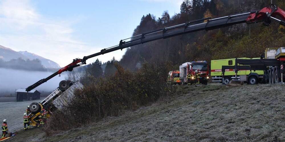 Am Donnerstagmorgen hat sich in Castrisch ein Lastwagen eine Böschung hinunter überschlagen. Der Fahrzeugführer wurde eingeklemmt und verletzt.
