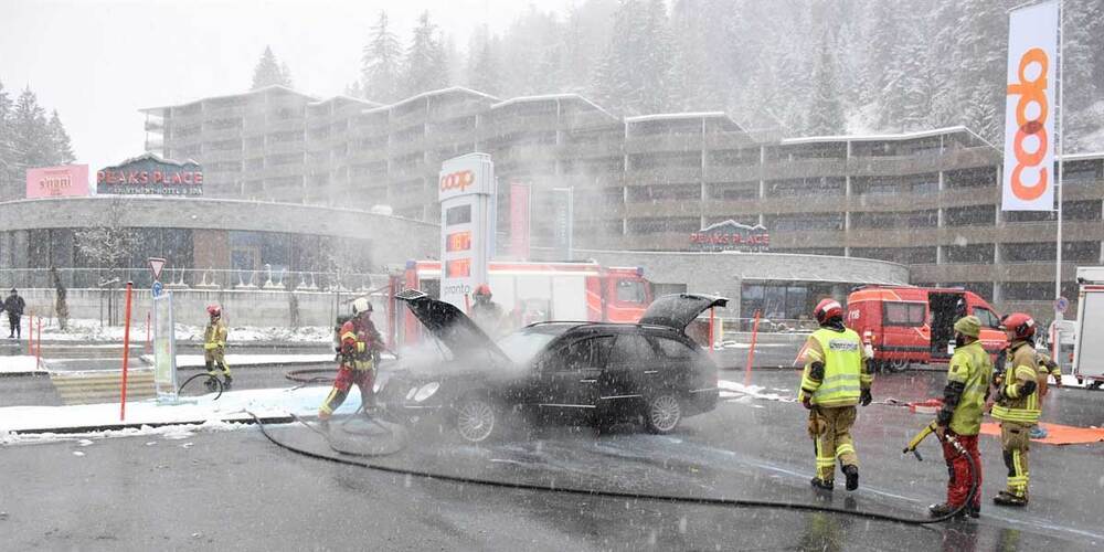 Auch in Laax ist am Donnerstag kurz nach 13 Uhr ein Personenwagen in Brand geraten, welcher zuerst mit Feuerlöschgeräten bekämpft wurde. Die Feuerwehr Flims löschte das brennende Auto. Der Personenwagenlenker verletzte sich beim Behändigen des Feuerlöschgeräts leicht an der Hand.