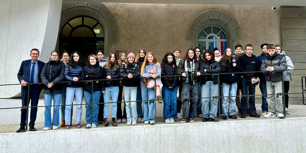 Zur Verabschiedung schenkte er uns noch ein Brötli mit Schoggistängeli und ein Erinnerungsfoto vor dem Grossratsgebäude durfte natürlich auch nicht fehlen. Anschliessend fuhren wir mit unseren Lehrpersonen Flurina Gruber und Jann Thöny wieder nach Grüsch, wo nachmittags Unterricht gemäss Stundenplan anstand.