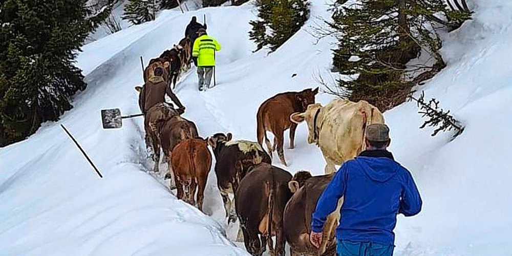 Viele kennen das gar nicht mehr, das Ausfüttern auf dem Maiensäss. Doch früher war dies eine Notwendigkeit. Man konnte das Bergheu nicht wie heute mit den Transportern ins Dorf führen, und schon gar nicht den Mist wieder hoch. Das Heu wurde vor Ort auf dem Maiensäss eingelegt. Somit sparte man sich den langen Weg ins Dorf, und auch die Zeit, die es gekostet hätte. Und so blieben die Bauern mit ihren Tieren oben, bis das Heu zur Neige ging. Der Mist war somit oben, wo er gebraucht wurde. Seit über 10 Jahren harrt Hannes Davatz als letzter Futterknecht auf den Huoben aus. Das war früher ganz anders. Hier oben am Berg stand in zahlreichen Ställen Vieh um die Weihnachtszeit. Überall brannte frühmorgens das Licht in den Hütten. Man hatte noch kein Telefon, dafür echten sozialen Kontakt. Jeden Freitagnachmittag traf man sich im Bergrestaurant Sassauna. Man war füreinander da und schaute sich um, ob der Kamin raucht, oder Licht in der Hütte brennt. So geschah einmal, dass sich bei einem Bauer über zwei Tage nichts regte. Daraufhin machten sich zwei der damals etlichen Futterknechte auf, um nach ihm zu sehen. Aufgefunden haben sie ihn dann gekrümmt vor Schmerz im Boorbett, im Stall. Eine Lungenentzündung hatte ihn ausser Gefecht gesetzt.