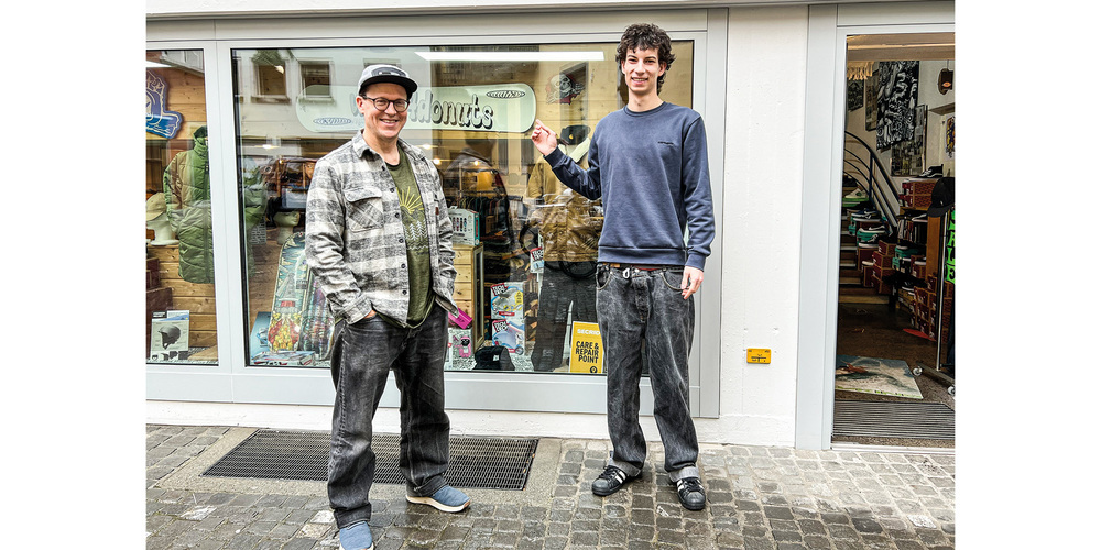 Er blickt auf und schaut in Richtung der gegenüberliegenden Backstube. «Wäre es nach meinem Bubentraum gegangen, würde ich vielleicht da drüben arbeiten», schwelgt Claudio Biedermann in seinen Erinnerungen. Doch das Leben hatte nicht etwa eine Konditorkarriere für ihn vorgesehen, sondern ganz andere Pläne in Aussicht gestellt. Biedermann, Baujahr 1973, ging in Neuhausen zur Schule, ehe er eine vierjährige Elektronikerlehre absolvierte. «Ich wusste, dass ich nicht auf dem Beruf bleiben wollte», erinnert er sich. Der Passion als Snowboarder geschuldet, war bald klar, dass Schaffhausen genau ein solcher Laden fehlt. «Es gab einen Kollegen, der ein Skatergeschäft in der Repfergasse führte, wo es jedoch keine Snowboards gab. Später, nach dem Umzug in die Neustadt 9 1993, durfte ich nach Absprache meine Snowboardartikel im neu benannten ‹Snow Skate› verkaufen.» Die Nachfrage war noch übersichtlich, jedoch erweiterte sich der Kundenkreis stetig. Das Momentum lag auf Biedermanns Seite, denn zusammen mit zwei Kollegen stand die Gründung einer GmbH bevor. Gleichzeitig konnten sich die Jungunternehmer die freigewordene Räumlichkeit an der Oberstadt 17 als Zwischennutzung sichern. Der Name «work4donuts» entstand aus einem Selektionsverfahren verschiedener Vorschläge. «Und dieser klang am besten», schmunzelt Biedermann. Im April 1994 wurde der neue Laden eröffnet, ehe bereits ein Jahr später, wegen dem Umbau des Hotel Rüden, der Umzug in die Oberstadt 21 folgte.