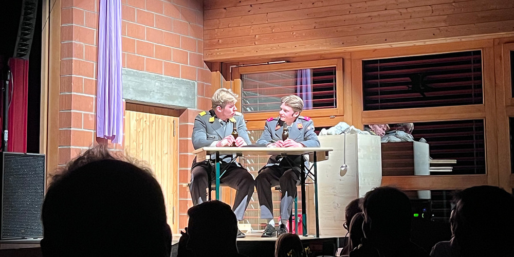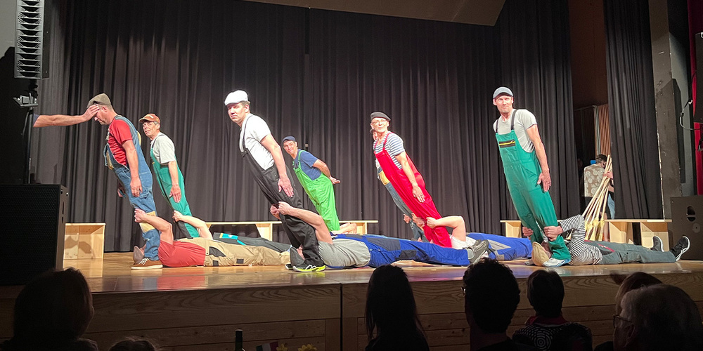 Kürzlich luden die Jeninser Turnvereine zur Unterhaltung ein. Auf einen «Roadtrip» durch Europa nahmen die Absolventen der Rekrutenschule Michel und Basti, dargestellt von Urs Bernhard und Andri Sulser (beide TV), das Publikum mit, um sich vom strengen Alltag zu erholen. Begleitet wurden sie bei ihrer Reise von den Jugendriegen, dem Damenturnverein (DTV), der Männerriege (MR) sowie dem Turnverein (TV) und sollten einige Abenteuer erleben.
