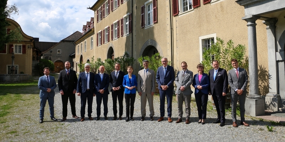 Die Bündner Regierung, angeführt von Regierungspräsident Marcus Caduff, konnte heute in Maienfeld die Regierung des Fürstentums Liechtenstein willkommen heissen. Regierungschefin Brigitte Haas wurde begleitet von den Regierungsräten Daniel Oehry, Hubert Büchel und Emanuel Schädler sowie von Regierungssekretär Michael Hasler. Nach der offiziellen Begrüssung und der Vorstellungsrunde folgte ein Arbeitsgespräch im Schloss Salenegg. Diskutiert wurde über die OECD-Mindeststeuer sowie über die grenzüberschreitende Zusammenarbeit im funktionalen Wirtschaftsraum «Alpenrheintal».