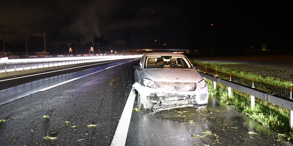 Um zirka 02:40 fuhr ein 29-jähriger Lenker mit seinem Fahrzeug von Chur kommend, in Richtung Landquart. Höhe der Wildüberführung Trimmis, kam das Fahrzeug auf der nassen Fahrbahn ins Schleudern und in der Folge auf dem Pannenstreifen mit Front in Richtung Süden zum Stillstand. Der Lenker beklagte sich über Schmerzen in der Brust und wurde mit der Rettung Chur ins Kantonsspital Graubünden gebracht. Das stark beschädigte Fahrzeug wurde durch die Pikettgarage abgeschleppt.