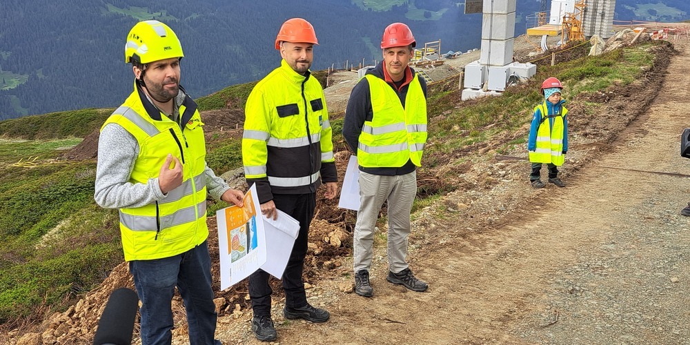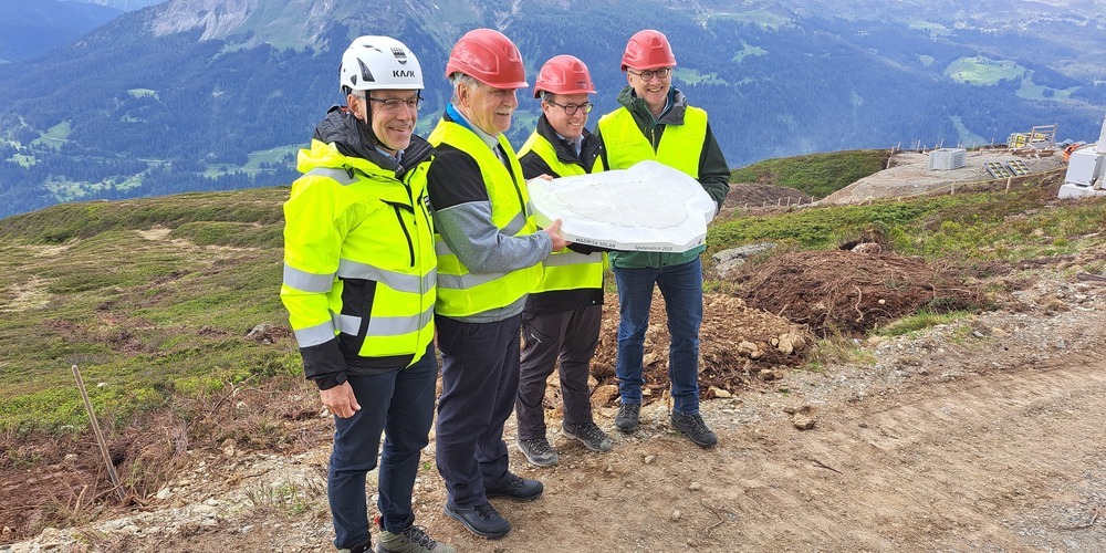 Zwar ist schon einiges im Tun, auf der Baustelle auf der Saaser Alp. Aber am vergangenen Mittwoch versammelte sich doch eine grössere Schar behelmter und mit Leuchtwesten ausgerüsteter Menschen hoch oben über Klosters. Es galt, den offiziellen Spatenstich für die Solaranlage auf Madrisa zu feiern.