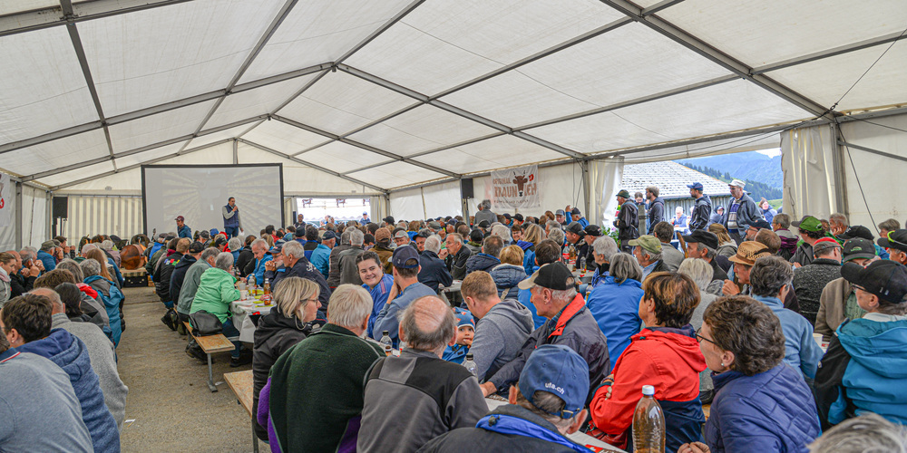 Am Sonntag, 3. August 2025 fand auf der Alp Rona in Furna im Prättigau der Alpanlass von Braunvieh bi dä Lüüt statt. Über 400 Besucherinnen und Besucher genossen einen eindrucksvollen Alptag bei kühlem, aber trockenem Wetter.