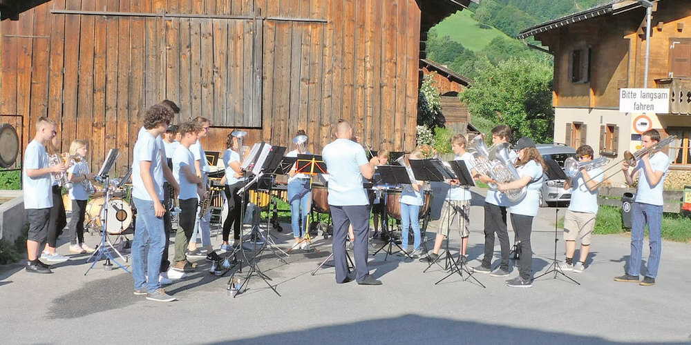 Seit einigen Wochen dürfen der Göschisound, die Jugendmusik und die Musikgesellschaft Jenaz nun wieder im Freien proben. Diese Zeit wurde genutzt, um sich auf Konzerte vor Publikum vorzubereiten. Unter der Leitung von Tristan Uth studierten die drei Jenazer Formationen Konzertprogramme ein.