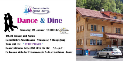 Gemeinsam mit dem Landhaus organisiert der Frauenverein Jenaz am kommenden Samstag, den 21. Januar erstmals ein Dance & Dine. Eingeladen sind alle, die gerne Kulinarik mit Tanzen v...